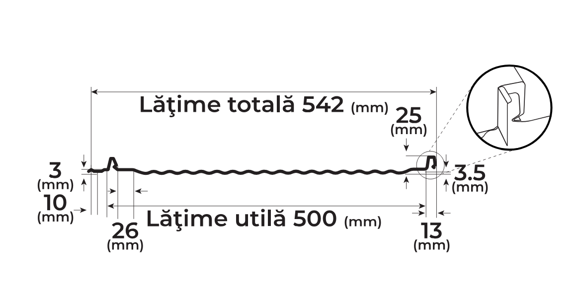 | Lungimea minimă | 1000 mm pentru Retro Panel, 2000 mm pentru Retro Panel Micro-Ribs și Retro Panel Flat |